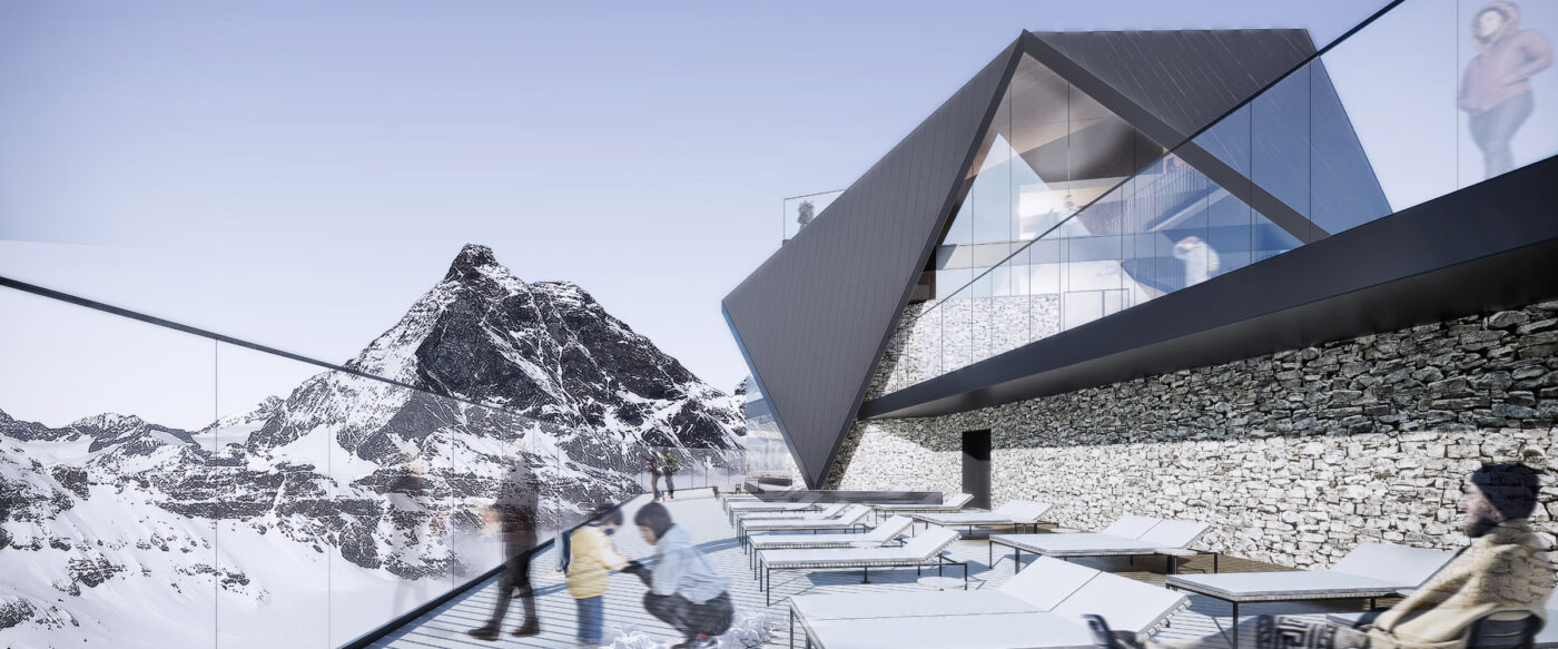 The project responds to a competition of ideas announced in 2019 for the redevelopment of the buildings owned by Società Cervino S.p.A. in Breuil Cervinia, Località Plateau Rosa, at an altitude of about 3500 m. The value lies in the uniqueness of the location and in the potential for enhancement possible thanks to a “responsible” redevelopment project, capable of restoring a “socially active” architecture to the environmental and landscape context for a careful enjoyment of the immense alpine heritage belonging to the Matterhorn area. The multidisciplinary project envisages hosting multiple activities to protect Plateau Rosa and the mountain’s value for the entire community.